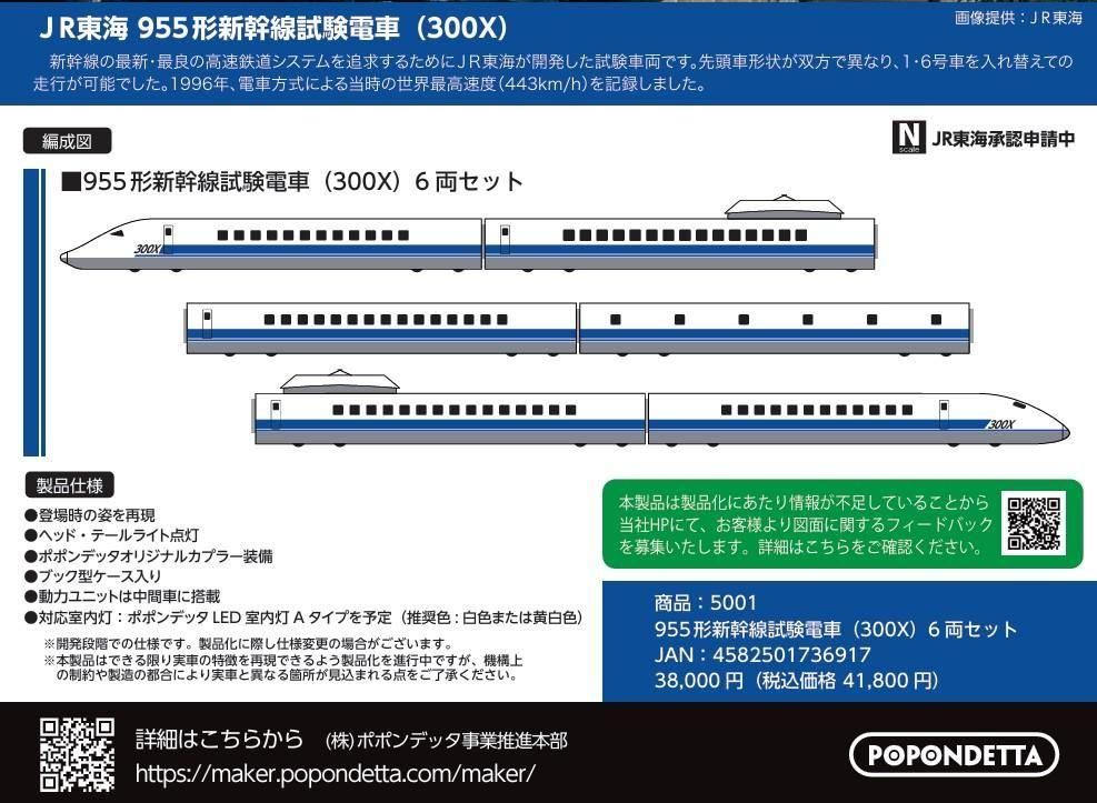 【トクトク予約】5001 ポポンデッタ 955形新幹線試験電車(300X)6両セット